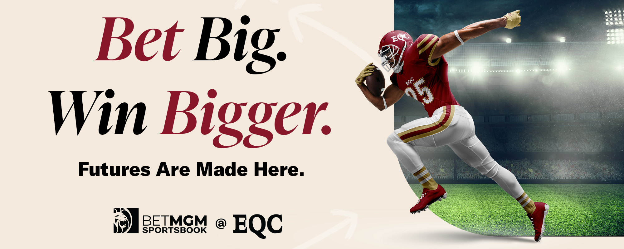 Place legal wagers on pro and college sports (excluding WA State college events) at our BetMGM @ EQC Sportsbooks, Our lounge at EQC Tacoma features 70 DreamSeat armchairs, one of the country's largest LED walls, and dozens of 86" TVs.