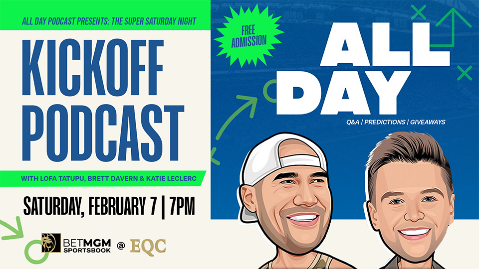 Join us on Saturday, February 7 at 7PM in the EQC Sportsbook lounge for a special Super Saturday Night Kickoff Podcast with Lofa Tatupu, Brett Davern, and Katie Leclerc!