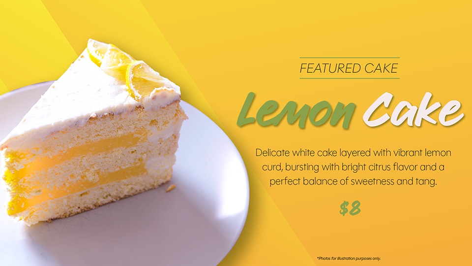 Delicate white cake layered with vibrant lemon curd, bursting with bright citrus flavor and a perfect balance of sweetness and tang.