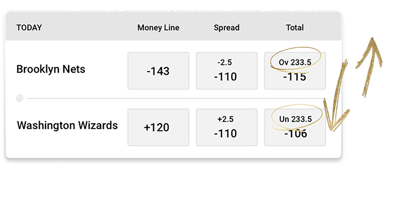 In the Brooklyn vs Washington game, the Over/Under is 233.5 points. If you bet the over, you're betting the total points scored in the game will be 234 or higher. If you bet the under, you're betting the total points will be 233 or lower.