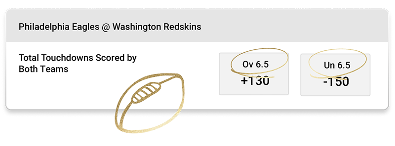 This football game prop is on the combined number of touchdowns scored by both teams. You can bet over or under 6½.